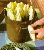 In de herfst worden de witlofwortelen uit de grond gehaald, nadat de bladeren eraf gesneden zijn met een machine. Die witlofwortelen worden dan naar witloftrekkers toegebracht. Deze boeren zetten de witlofwortelen eerst een tijdje in de koeling (een grote koelkast), zodat de witlofwortelen denken dat het winter is.